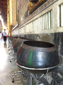 这一次要到Wat Pho去,稍微读了一下资料,才发觉原来人家不只是睡佛这么简单(怎么以前我们来就是一口气冲到睡佛?)泰国卧佛寺是曼谷历史最悠久和最大的寺庙,也是泰国第一座公共教育中心。卧佛寺分两域,一是供奉卧佛大雄宝殿和佛陀博物馆;另一区四座大佛塔和99座小佛塔,周围有图书馆、修道佛堂和泰式按摩学院。在卧佛寺大殿走廊的柱子上、墙壁上及各佛殿、排亭中都刻有很多碑文。碑文在三世王时刻成,其内容有建筑、历史、佛史、医药、格言、文学、地理、风俗习惯等,被称为泰国的第一所大学。